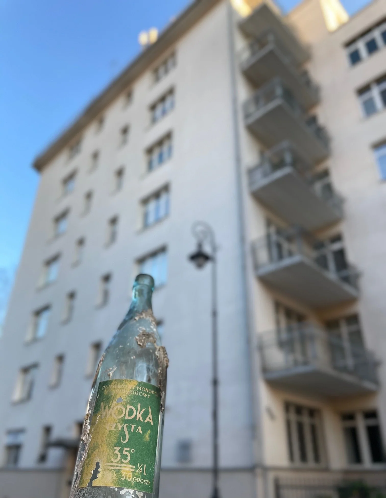 And within that world, that time, here in a district of Warsaw called Powiśle which was then mostly empty fields rather than the hub of hip living as it is today, yes within all that this new apartment building was going up. And some workers were finishing a job, another day’s work. Or perhaps drinking while on the job. Or celebrating a birthday, a Name Day, who knows. But there was a vodka bottle somehow involved, and somehow it then ended up behind a wall, this time capsule, this message in a 156-gram bottle.