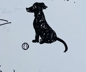 Her book about our beloved dog, I’d just discovered it again and became enchanted by it, and the pages and memories stayed with me throughout that morning drive. I was seeing him and feeling him again next to me, on the passenger’s seat, just as he always sat there, upright and looking forward through the windshield, and even shifting his weight to the left or right to counterbalance whenever a turn was coming up. A turn he knew. Because he knew where we were going, he always knew everything, and he had his tennis ball there, ready.