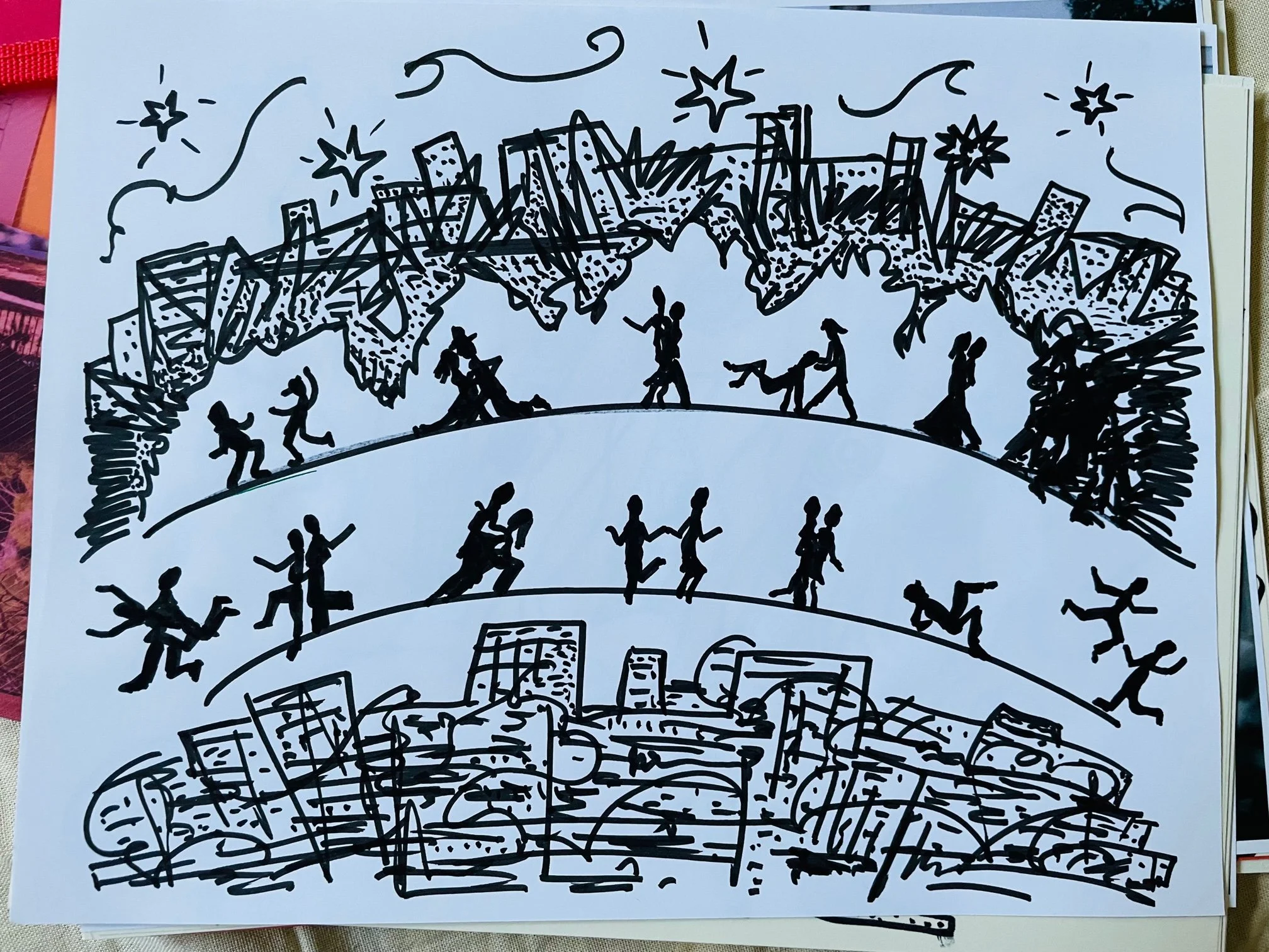 I’m back in her room now, near the chest. I’m tired, exhausted really, from all this, from these finds and the emotions and this storm of everything. I’m overwhelmed, but happy. Mostly just happy. Or in awe. She was doing so much more than I ever knew. She was really trying. She was playing and creating, even in that period when she told me art had let her go, that she wasn’t really painting much anymore.